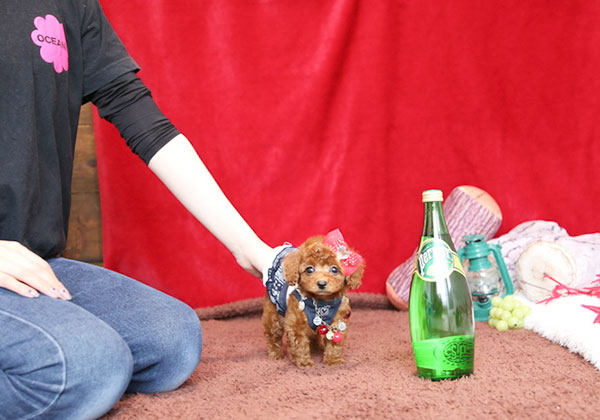 トイプードル、レッドの女の子。くりくりお目目のお姫様!